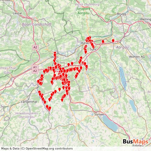 Aargau Verkehr Ag, based in Zofingen, Aargau, Switzerland, offers a network of 14 public transport routes, including Bus. Our platform provides detailed and up-to-date information on routes, schedules, stops, and arrivals for all services operated by Aargau Verkehr Ag. Whether you're planning your daily commute or exploring the area, our tools help you find the nearest stop and the best route to your destination.