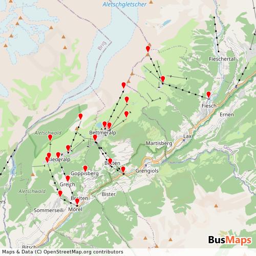 Abag (Aletsch Bahnen Ag), based in Brig, Valais, Switzerland, offers a network of 8 public transport routes, including Bus and Cable car. Our platform provides detailed and up-to-date information on routes, schedules, stops, and arrivals for all services operated by Abag (Aletsch Bahnen Ag). Whether you're planning your daily commute or exploring the area, our tools help you find the nearest stop and the best route to your destination.