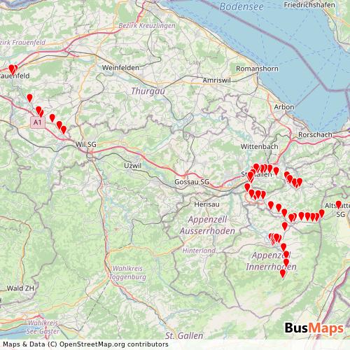 Automobildienst Appenzeller Bahnen operates in the following cities: Appenzell, Frauenfeld, Muenchwilen, Sankt Gallen.