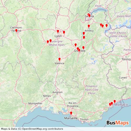 Blablacar Bus operates in the following cities: Geneve, Chambery, Grenoble, Lyon, Nice, Saint-Etienne.