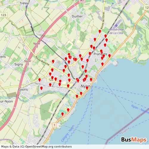 Bus Nyon-Prangins operates in the following cities: Nyon.