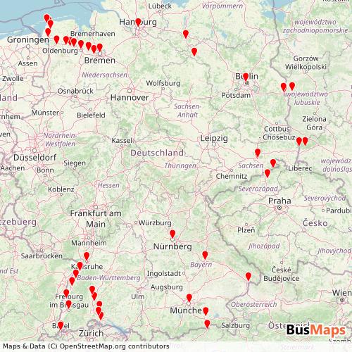 DB Fernverkehr Ag operates in the following cities: Basel, Regensburg, Rottweil, Slubice, Westerstede.