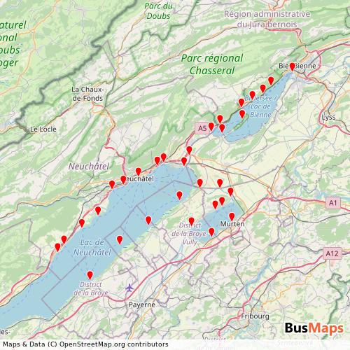Lacs de Neuchâtel et Morat operates in the following cities: Neuchatel.