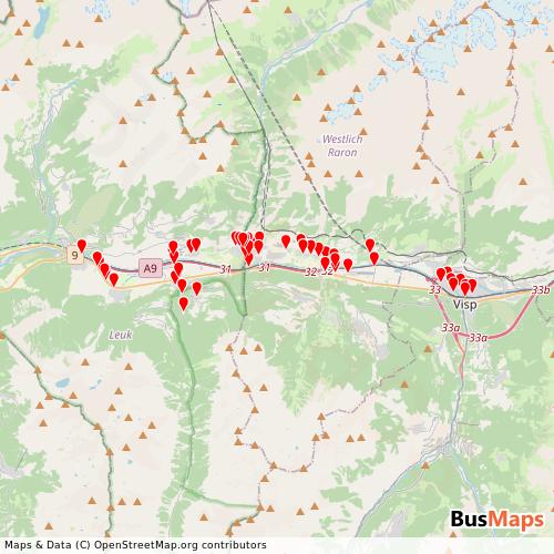RA/bus (Regionalps Bus) operates in the following cities: Raron, Leuk, Turtmann.