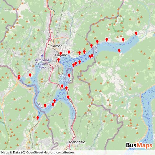 Transit Data for Switzerland by SNL (Lago di Lugano) with Stops on Map