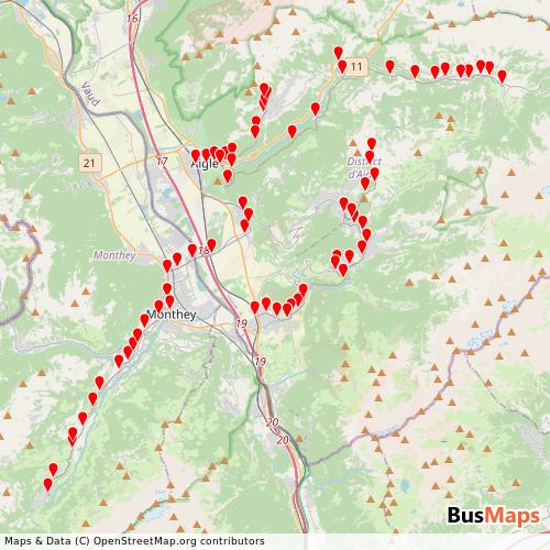 TPC (Transports Publics du Chablais) operates in the following cities: Aigle, Monthey, Saint-Maurice, Gryon.