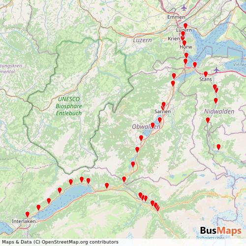 ZB (Zentralbahn) operates in the following cities: Sarnen, Luzern, Meiringen, Stans, Interlaken.