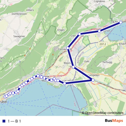 The first stop of the 1 bus route is Neuchâtel, Université and the last stop is La Neuveville, poste. 1 (B 1) is operational during am Wochenende.