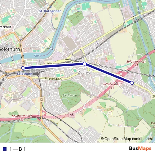 See why over 2 million users trust and consider busmaps.com as the best public transport website. busmaps gives you Solothurn Buses suggested routes, real-time bus tracker, line route maps in Solothurn, and helps to find the closest 1 bus stops near you. No internet available? Download an offline PDF map and bus schedule for the 1 bus to take on your trip.