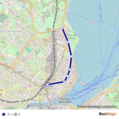 See why over 2 million users trust and consider busmaps.com as the best public transport website. busmaps gives you Geneve Buses suggested routes, real-time bus tracker, line route maps in Geneve, and helps to find the closest 1 bus stops near you. No internet available? Download an offline PDF map and bus schedule for the 1 bus to take on your trip.