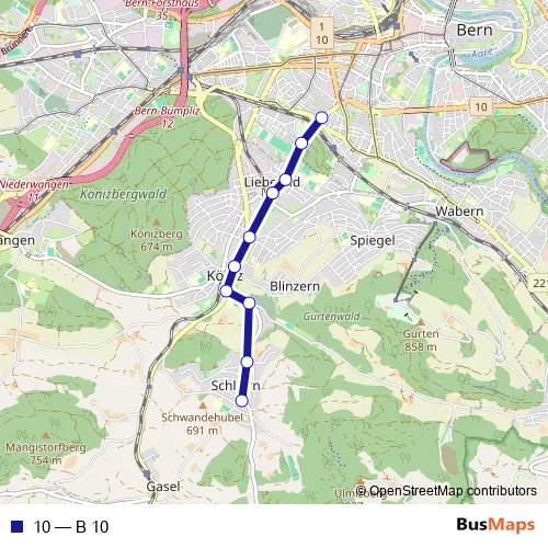 See why over 2 million users trust and consider busmaps.com as the best public transport website. busmaps gives you Bern Buses suggested routes, real-time bus tracker, line route maps in Bern, and helps to find the closest 10 bus stops near you. No internet available? Download an offline PDF map and bus schedule for the 10 bus to take on your trip.