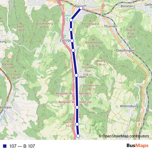 See why over 2 million users trust and consider busmaps.com as the best public transport website. busmaps gives you Sissach Buses suggested routes, real-time bus tracker, line route maps in Sissach, and helps to find the closest 107 bus stops near you. No internet available? Download an offline PDF map and bus schedule for the 107 bus to take on your trip.