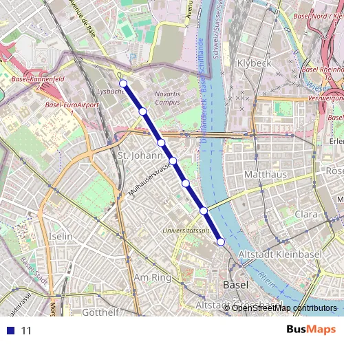 See why over 2 million users trust and consider busmaps.com as the best public transport website. busmaps gives you Basel Buses suggested routes, real-time bus tracker, line route maps in Basel, and helps to find the closest 11 bus stops near you. No internet available? Download an offline PDF map and bus schedule for the 11 bus to take on your trip.