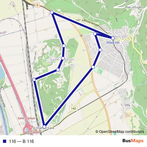 The first stop of the 116 bus route is Ollon VD, gare and the last stop is Ollon VD, gare. 116 (B 116) is operational during an Werktagen.