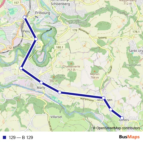 See why over 2 million users trust and consider busmaps.com as the best public transport website. busmaps gives you Fribourg Buses suggested routes, real-time bus tracker, line route maps in Fribourg, and helps to find the closest 129 bus stops near you. No internet available? Download an offline PDF map and bus schedule for the 129 bus to take on your trip.