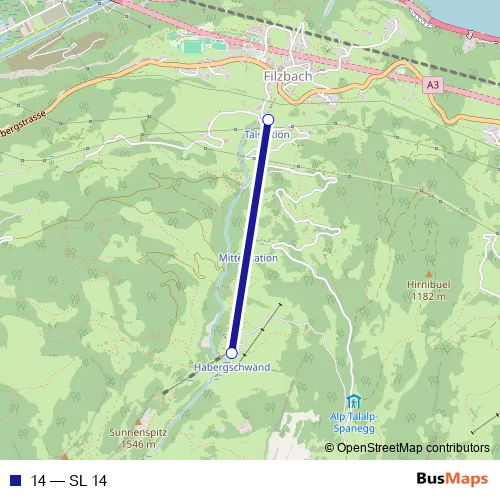 The first stop of the 14 cable-car route is Habergschwänd and the last stop is Filzbach (Habergschwänd Talst). 14 (SL 14) is operational during täglich.