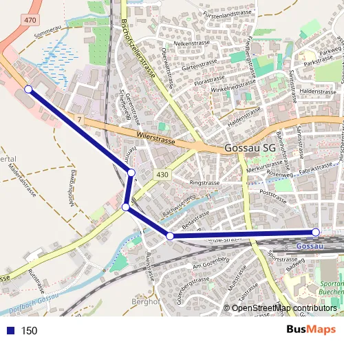 The first stop of the 150 bus route is Gossau SG, Eichen and the last stop is Gossau SG, Bahnhof. 150 is operational during täglich.