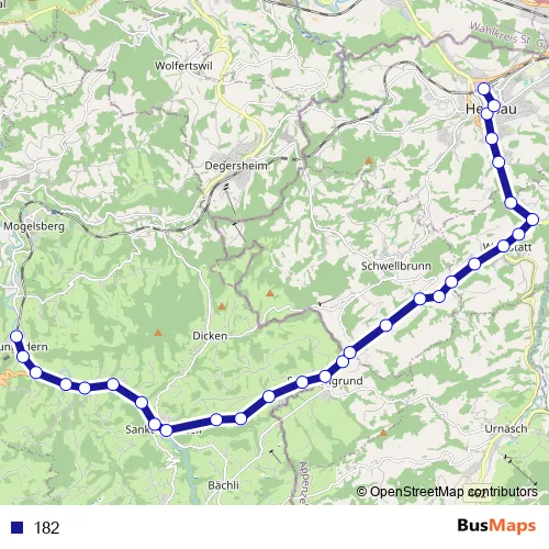 See why over 2 million users trust and consider busmaps.com as the best public transport website. busmaps gives you Herisau Buses suggested routes, real-time bus tracker, line route maps in Herisau, and helps to find the closest 182 bus stops near you. No internet available? Download an offline PDF map and bus schedule for the 182 bus to take on your trip.
