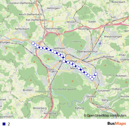 See why over 2 million users trust and consider busmaps.com as the best public transport website. busmaps gives you Winterthur Buses suggested routes, real-time bus tracker, line route maps in Winterthur, and helps to find the closest 2 bus stops near you. No internet available? Download an offline PDF map and bus schedule for the 2 bus to take on your trip.