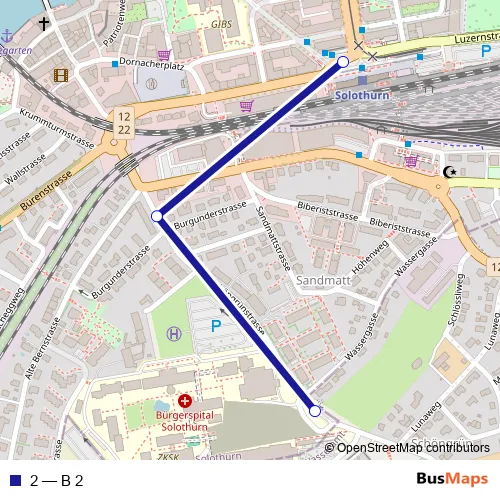 See why over 2 million users trust and consider busmaps.com as the best public transport website. busmaps gives you Solothurn Buses suggested routes, real-time bus tracker, line route maps in Solothurn, and helps to find the closest 2 bus stops near you. No internet available? Download an offline PDF map and bus schedule for the 2 bus to take on your trip.