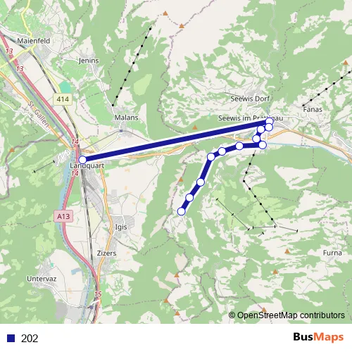 See why over 2 million users trust and consider busmaps.com as the best public transport website. busmaps gives you Landquart Buses suggested routes, real-time bus tracker, line route maps in Landquart, and helps to find the closest 202 bus stops near you. No internet available? Download an offline PDF map and bus schedule for the 202 bus to take on your trip.