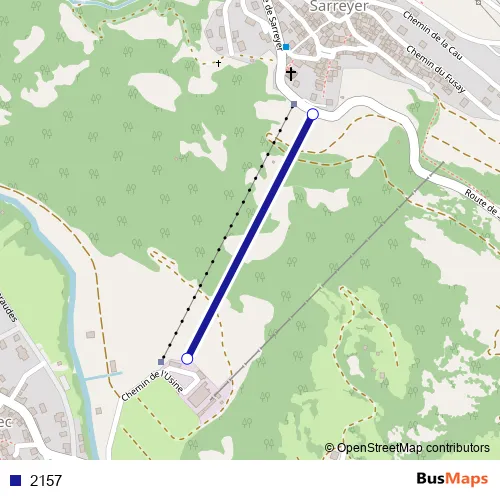 The first stop of the 2157 cable-car route is Champsec Téléphérique and the last stop is Sarreyer Téléphérique. 2157 is operational during täglich.