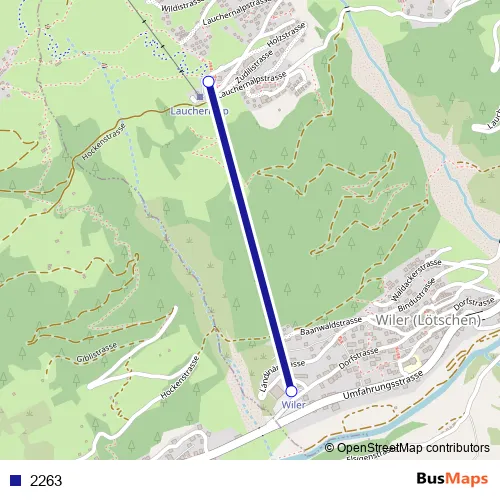 The first stop of the 2263 cable-car route is Lauchernalp and the last stop is Wiler (Lötschen) (Talstation). 2263 is operational during täglich.