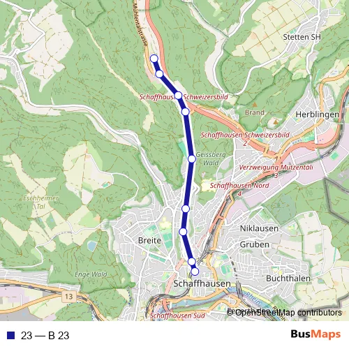See why over 2 million users trust and consider busmaps.com as the best public transport website. busmaps gives you Schaffhausen Buses suggested routes, real-time bus tracker, line route maps in Schaffhausen, and helps to find the closest 23 bus stops near you. No internet available? Download an offline PDF map and bus schedule for the 23 bus to take on your trip.