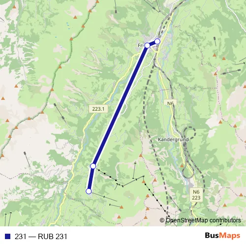 See why over 2 million users trust and consider busmaps.com as the best public transport website. busmaps gives you Frutigen Buses suggested routes, real-time bus tracker, line route maps in Frutigen, and helps to find the closest 231 bus stops near you. No internet available? Download an offline PDF map and bus schedule for the 231 bus to take on your trip.