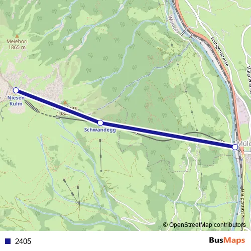 The first stop of the 2405 funicular route is Niesen Kulm and the last stop is Mülenen (Niesenbahn). 2405 is operational during täglich.
