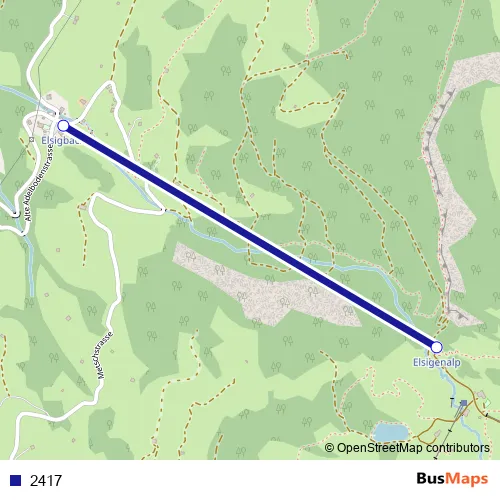 The first stop of the 2417 cable-car route is Elsigbach (Talstation) and the last stop is Elsigenalp. 2417 is operational during täglich.