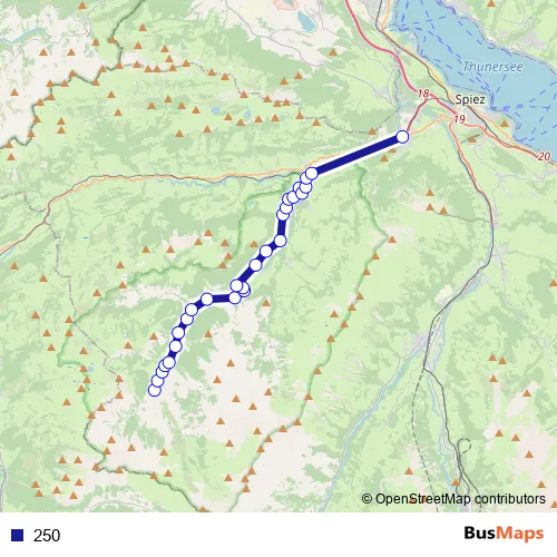 See why over 2 million users trust and consider busmaps.com as the best public transport website. busmaps gives you Thun Buses suggested routes, real-time bus tracker, line route maps in Thun, and helps to find the closest 250 bus stops near you. No internet available? Download an offline PDF map and bus schedule for the 250 bus to take on your trip.