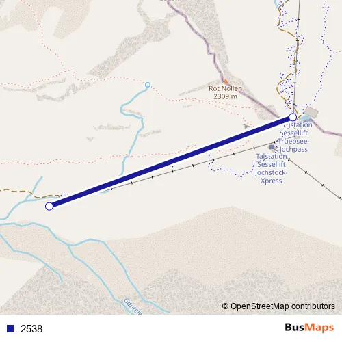 The first stop of the 2538 cable-car route is Engstlensee and the last stop is Jochpass. 2538 is operational during täglich.