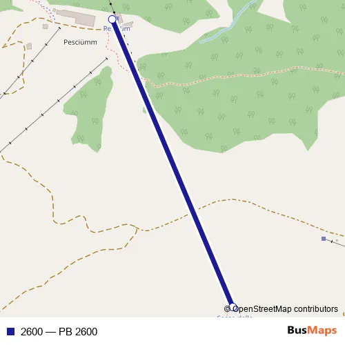 The first stop of the 2600 cable-car route is Pesciüm and the last stop is Sasso della Boggia. 2600 (PB 2600) is operational during täglich.