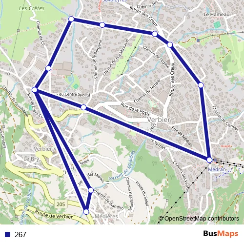 See why over 2 million users trust and consider busmaps.com as the best public transport website. busmaps gives you Verbier Buses suggested routes, real-time bus tracker, line route maps in Verbier, and helps to find the closest 267 bus stops near you. No internet available? Download an offline PDF map and bus schedule for the 267 bus to take on your trip.
