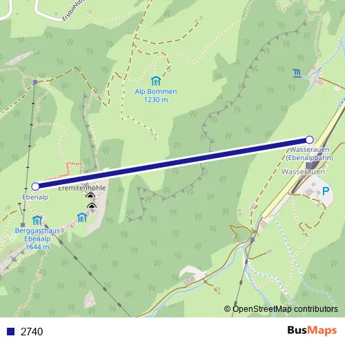 The first stop of the 2740 cable-car route is Ebenalp and the last stop is Wasserauen (Ebenalpbahn). 2740 is operational during täglich.