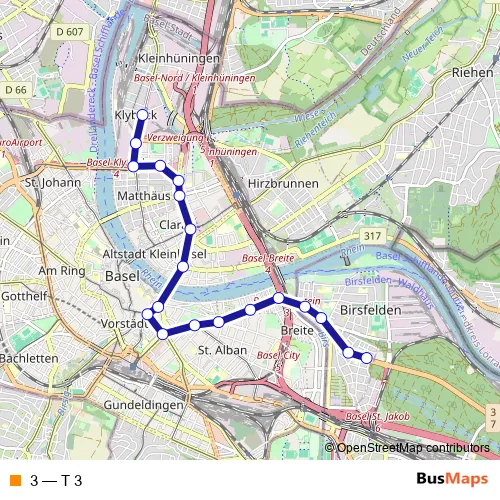 See why over 2 million users trust and consider busmaps.com as the best public transport website. busmaps gives you Basel Trams suggested routes, real-time bus tracker, line route maps in Basel, and helps to find the closest 3 tram stops near you. No internet available? Download an offline PDF map and bus schedule for the 3 tram to take on your trip.