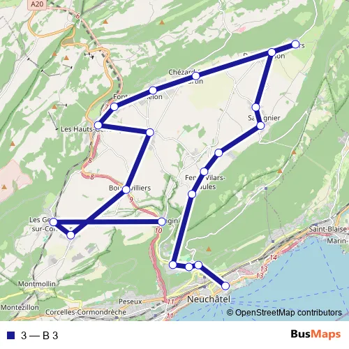 Bus 3 - B 3: Full Schedule in Neuchatel