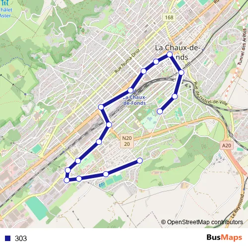 See why over 2 million users trust and consider busmaps.com as the best public transport website. busmaps gives you La Chaux-de-Fonds Buses suggested routes, real-time bus tracker, line route maps in La Chaux-de-Fonds, and helps to find the closest 303 bus stops near you. No internet available? Download an offline PDF map and bus schedule for the 303 bus to take on your trip.