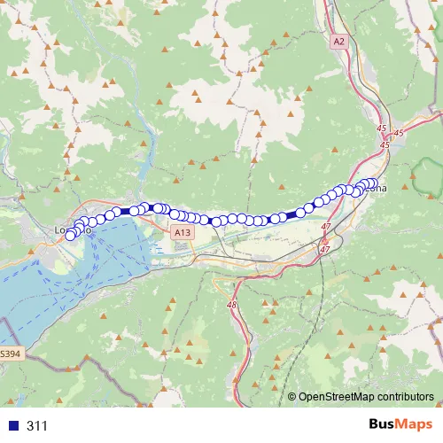 The first stop of the 311 bus route is Bellinzona, Stazione and the last stop is Locarno, Rotonda. 311 is operational during täglich.