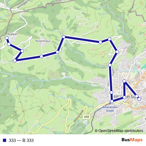 Bus 333 - B 333 in Appenzell: Stops & Timetable