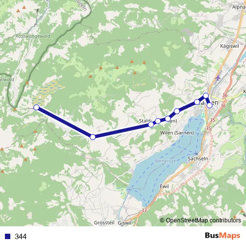 The first stop of the 344 bus route is Sarnen, Bahnhof and the last stop is Langis. 344 is operational during täglich.