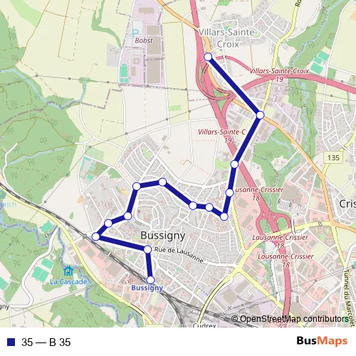 The first stop of the 35 bus route is Bussigny, Riettaz and the last stop is Bussigny, gare. 35 (B 35) is operational during täglich.