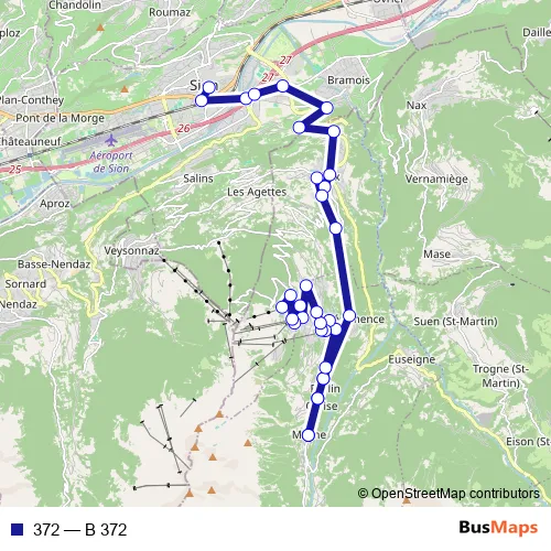 Bus 372 - B 372 in Sitten: Stops & Timetable