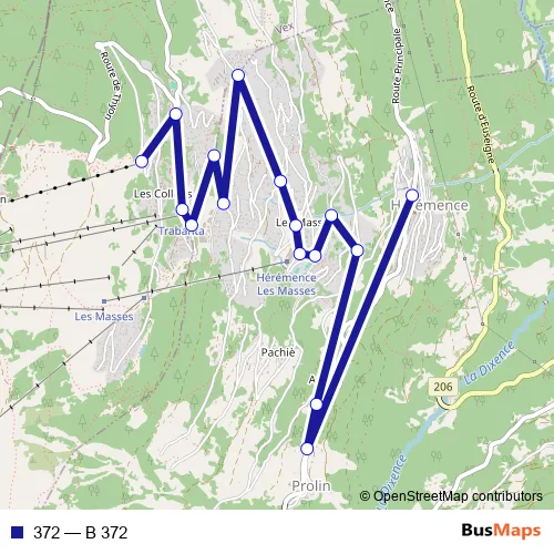 The first stop of the 372 bus route is Hérémence and the last stop is Les Collons, Cambuse. 372 (B 372) is operational during täglich.