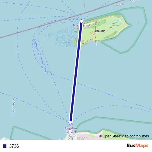 The first stop of the 3736 ferry route is Pfäffikon SZ (See) and the last stop is Pfäffikon SZ (See). 3736 is operational during täglich.