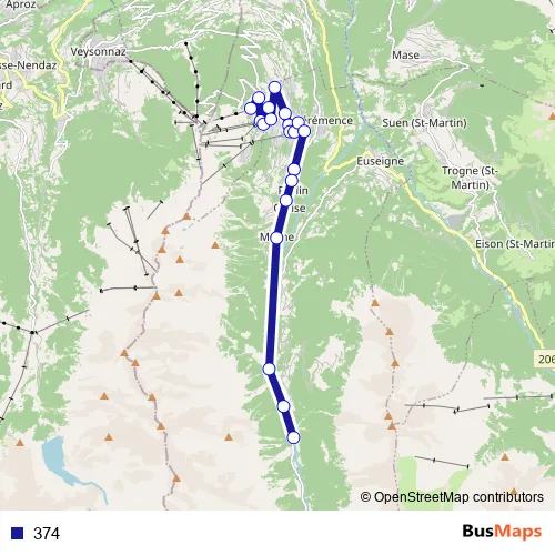 See why over 2 million users trust and consider busmaps.com as the best public transport website. busmaps gives you Sitten Buses suggested routes, real-time bus tracker, line route maps in Sitten, and helps to find the closest 374 bus stops near you. No internet available? Download an offline PDF map and bus schedule for the 374 bus to take on your trip.
