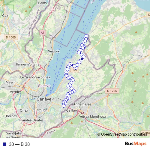 See why over 2 million users trust and consider busmaps.com as the best public transport website. busmaps gives you Geneve Buses suggested routes, real-time bus tracker, line route maps in Geneve, and helps to find the closest 38 bus stops near you. No internet available? Download an offline PDF map and bus schedule for the 38 bus to take on your trip.