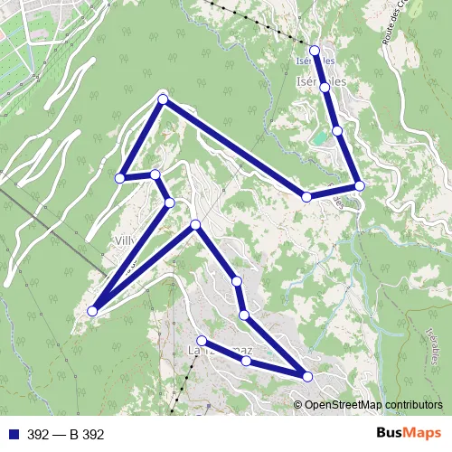 The first stop of the 392 bus route is La Tzoumaz, télécabine and the last stop is Isérables, téléphérique. 392 (B 392) is operational during täglich.
