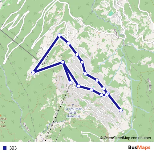 The first stop of the 393 bus route is La Tzoumaz, télécabine and the last stop is La Tzoumaz, télécabine. 393 is operational during täglich.